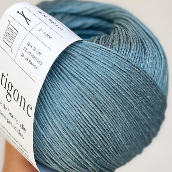 Antigone je vyrobená z ľanu pestovaného v Normandii družstvom Terre de lin ako súčasť projektu návratu k starým kultivačným postupom zameraným na ochranu pôdy a výrobu vysokokvalitných vlákien bez chemických vstupov. Tieto dlhé vlákna sú pradené za mokra v Litve s veľkou starostlivosťou, aby vytvorili pravidelnú, mäkkú a prirodzene lesklú priadzu. Priadza sa potom skrúca a farbí vo Francúzsku v oblasti Creuse.