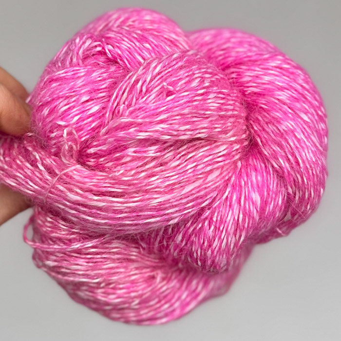 Romantický odtieň ružovej, v ktorom sa spája jemnosť s energiou. Základ z nadýchanej alpaky a vlny s vláknom Tencelu dodáva hebkosť, zatiaľ čo biele papierové vlákno vytvára žiarivý kontrast a jemný lesk.