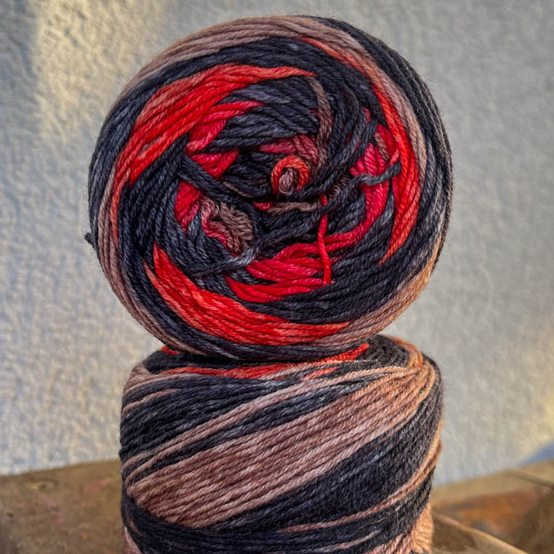 Samoprúžkujúca sada dvoch rovnakých klbiek pre upletenie páru ponožiek z meríno vlny